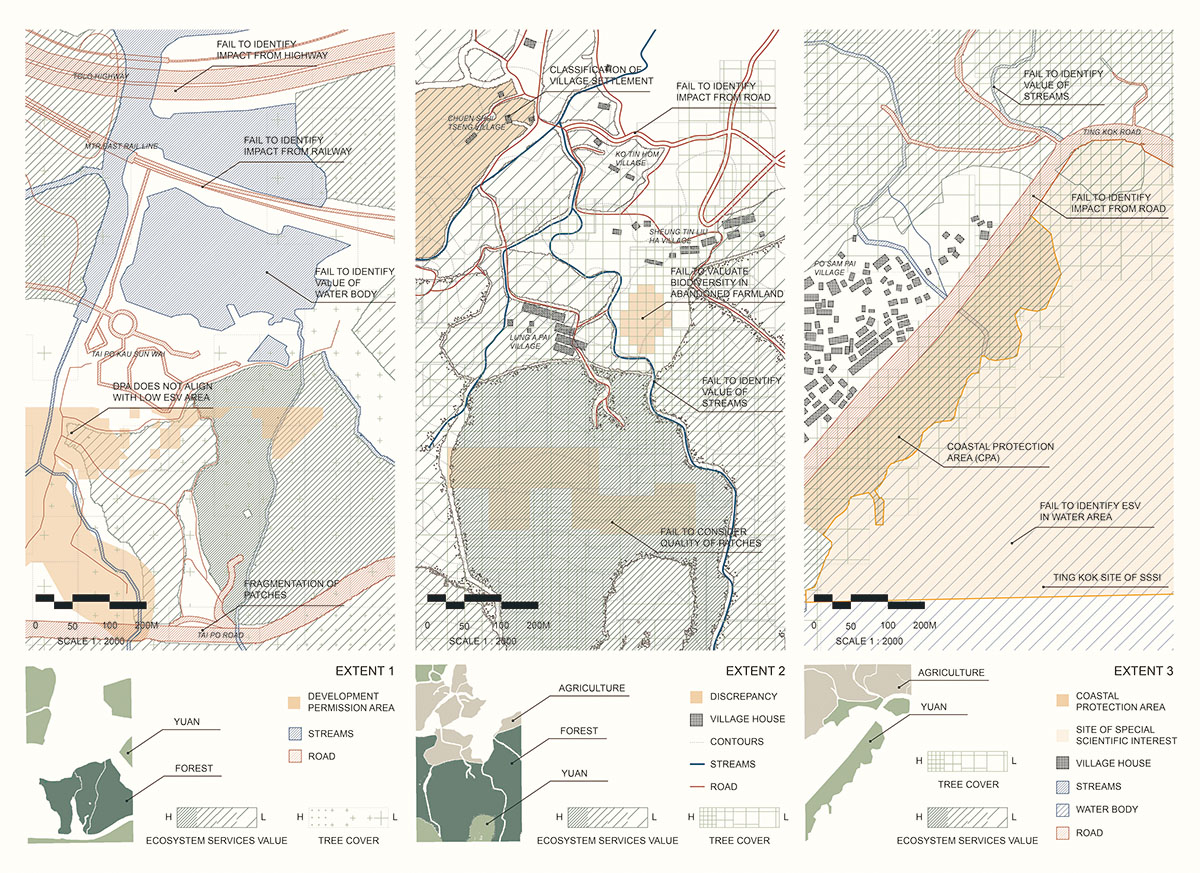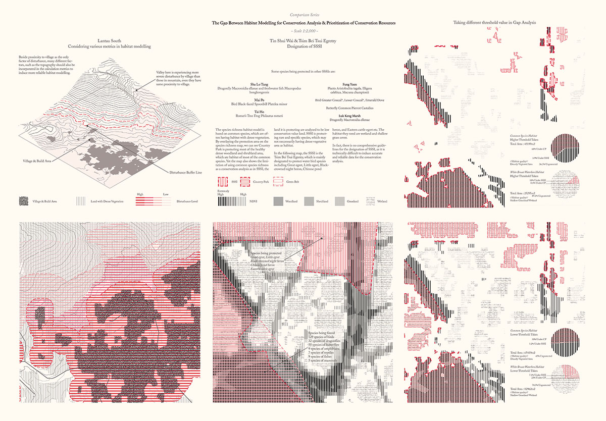 This advanced computation-theory seminar explores the paradoxes of environmental valuation through a combination of computational design and environmental planning. Similar to past "Design Analytics" seminars, we place equal focus on theory in development geography and technological innovation in parametric geospatial approaches, unleashing the narrative capacity of the design disciplines and building skillsets for working within "natures", patterns, field conditions, and bespoke analytic models. For term projects, students will build highly physical and parametric scenarios of 40+ landscapes across Hong Kong that were converted from conservation uses within the past five years, architecturally documenting their degradation, natural capital, species richness, maintenance, enforcement, and participatory spaces. The ambiguity of green belt (GB) zoning necessitates new modes of negotiation of environmental ethics and economy, especially in Hong Kong's current land development climate. Such ambiguity is a strong entry point for the applied fields of landscape and architecture, as well as an important learning struggle that trains designers to recognize and work within such phenomena.
